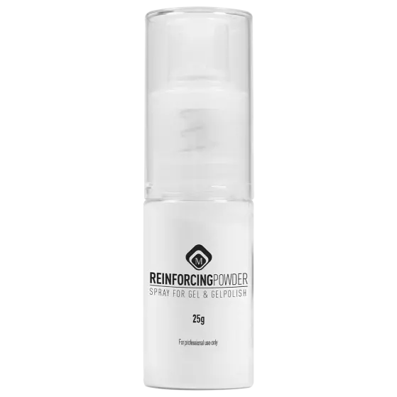 Gebruik Reinforcing Powder om de basis gel van je keuze extra sterkte te geven.
